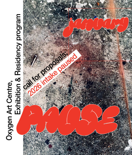 Oxygen Art Centre will *not* be opening our annual call for proposals to the Exhibition & Residency program this year [2026]. The artist-run centre is working behind-the-scenes towards strategic planning activities and systems change work, and part of this work includes reviewing and updating our application process and committee review criteria.