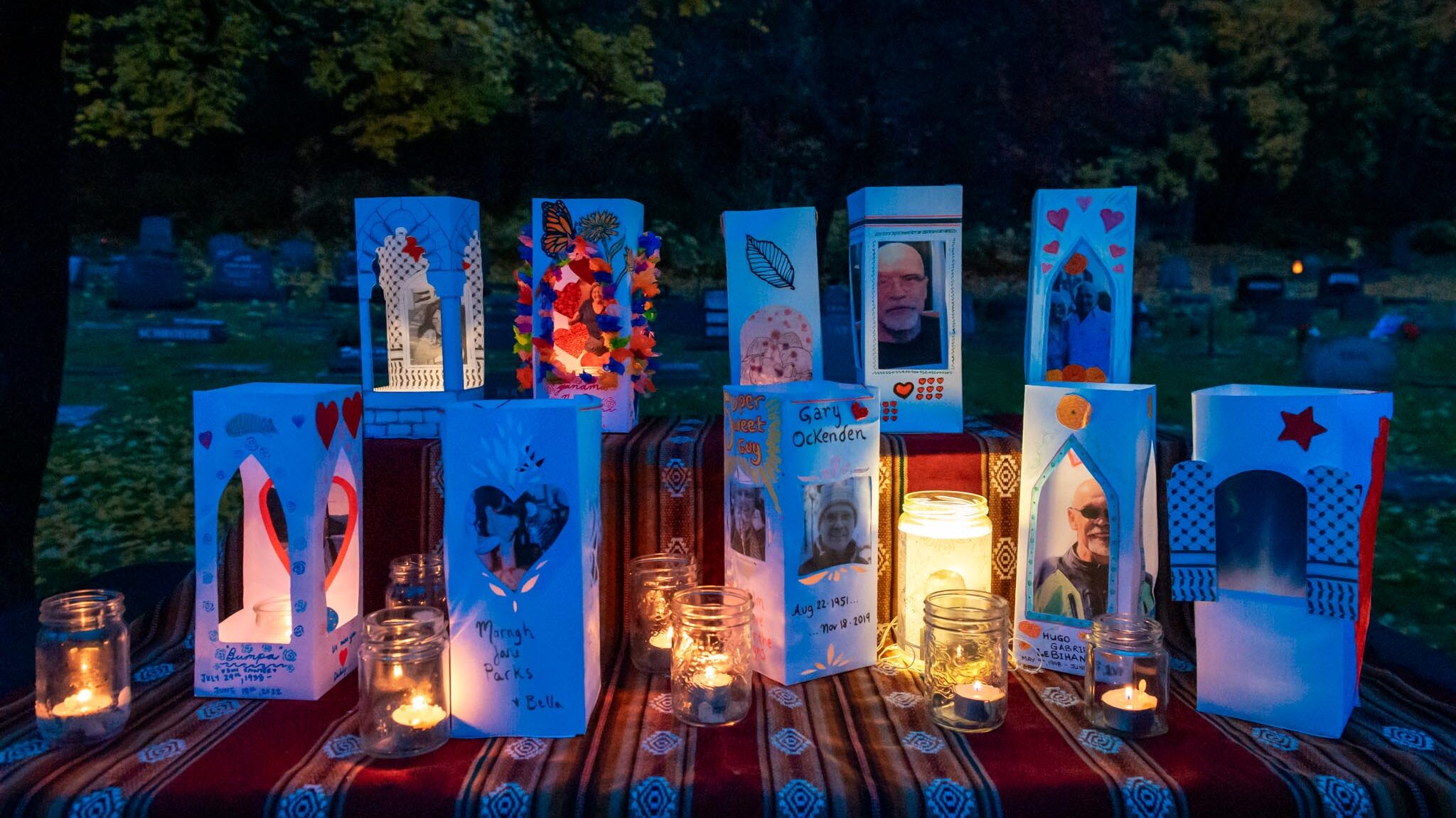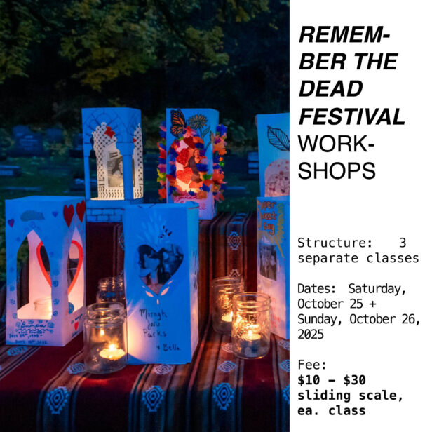 In this workshop, visual artist Myra Rasmussen invites participants to remember their loved ones by making a lantern or paper altar in their honour. We will provide a paper box, materials and guidance to add collage, text, and line drawings. We encourage you to bring a black and white photocopy of your loved one(s) to incorporate into the piece. This will be a mostly silent, introspective class with live music accompaniment to set the mood. All participants are encouraged to bring their luminaria to the Polka Dot Dragon Arts Society’s Remember the Dead event on Sunday November, 2nd.